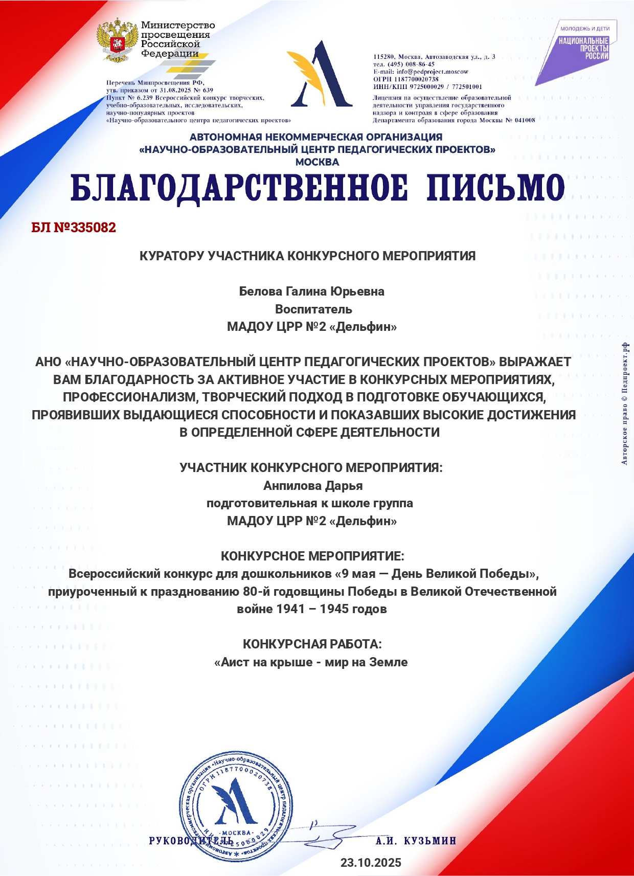 Благодарственное письмо