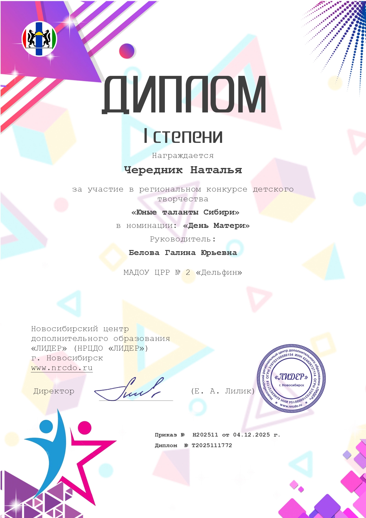 ДИПЛОМ 1 МЕСТО