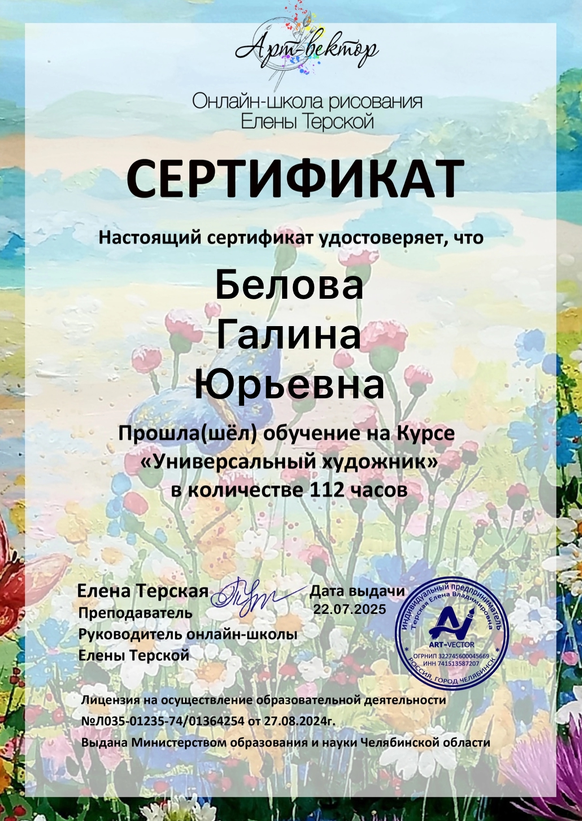 (ООО "АРТ ГАММА". 24часов. Форма обучения: заочная.).