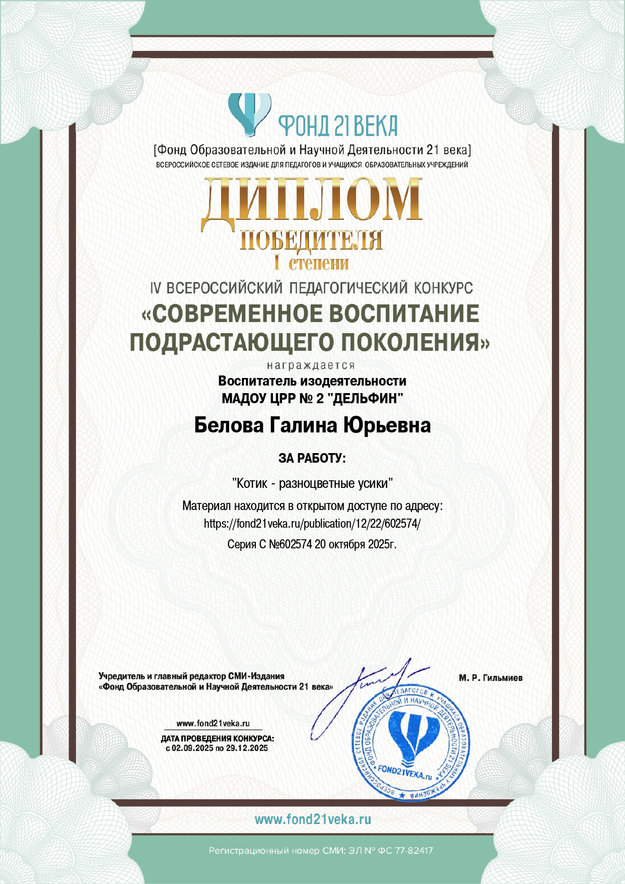 IV ВСЕРОССИЙСКИЙ ПЕДАГОГИЧЕСКИЙ КОНКУРС "СОВРЕМЕННОЕ ВОСПИТАНИЕ ПОДРАСТАЮЩЕГО ПОКОЛЕНИЯ" [Электронный ресурс] // 2026. URL: